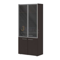 Офисный шкаф навесной узкий ПК-СПК-ШН58Х45 №45914 - столешница: тамбурат 86мм мм, кромка: пвх 1мм, покрытие: шпон, стекло: тонированное, зеркальное.